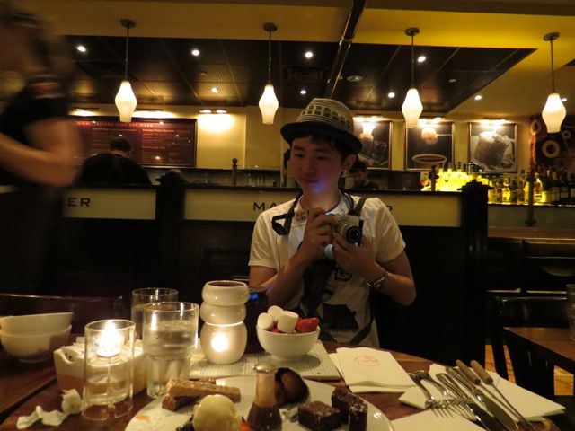 Calvin surveys our sweet, chocolatey feast at Max Brenner, Union Square