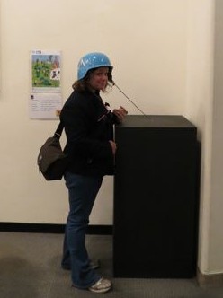 I got to try on a UN Peacekeeper’s helmet, which was lots of fun but it was too big for me – both literally and figuratively speaking. However, I was particularly inspired by the School In A Box initiative. A paltry sum of money (less than we might spend on dinner out, for example) buys a metal box filled with all the basics for a classroom in a remote or underprivileged area. The inside lid of the box doubles as a small blackboard, and contains everything from a solar-powered radio, chalk and notebooks to paint that can be used to convert any wall into blackboard space. I was also happy to see them mention http://www.freerice.com , an initiative from the World Food Programme that I’ve always encouraged my more advanced students to use. It’s a simple word game, and for every answer you get correct, 10 grains of rice are donated. Not bad, eh? And for so little effort on our part. If you’ve got a few free seconds, go and play. 🙂