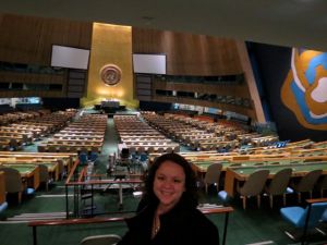 Reluctantly leaving the General Assembly, we were taken on a little tour of the UN’s global objectives, and shown some of the things they wish to avoid or eradicate. A display of land mines creeped me out, as did a terrible photograph of a van in Angola that had basically been torn to shreds by gunfire. A man rested against a wall nearby which was strewn with bullet holes, casually cradling a giant gun in his lap with his leg up. That picture shows everyday life for this man. How lucky we are, and how easy it is to forget that.