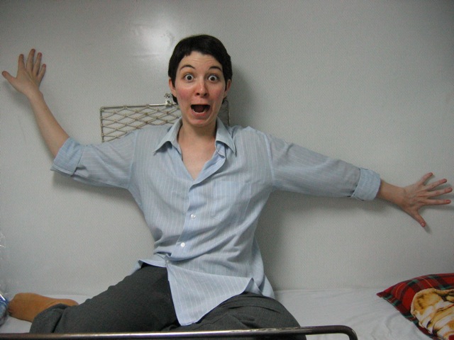 - Claustrophobia strikes! Notice our little puppy pillows, provided by the train company.