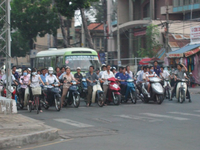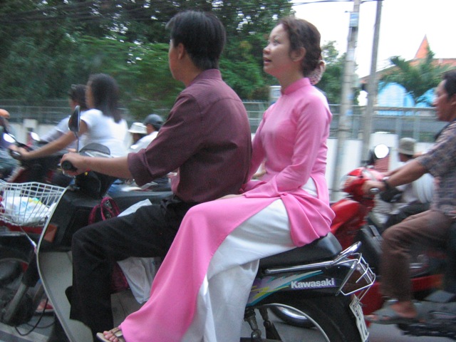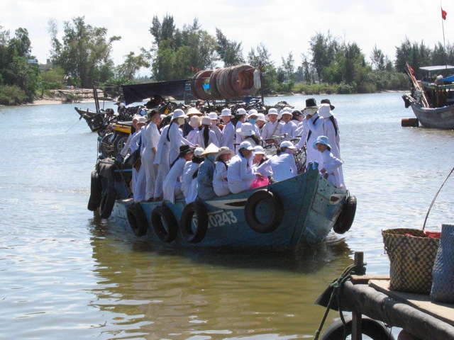 - Schoolgirls catch the boat to cross the river after school, Hoi An
