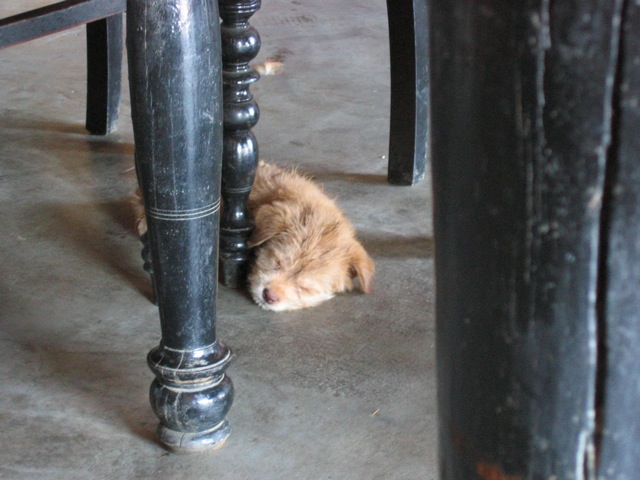 - A puppy dozes in the cafe where we eat lunch, Hoi An.