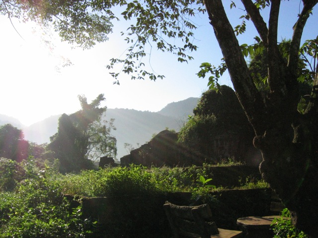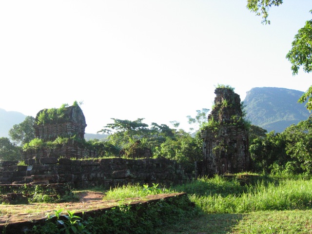 - Our first glimpse of the My Son Cham temple ruins, just after sunrise, outside Hoi An