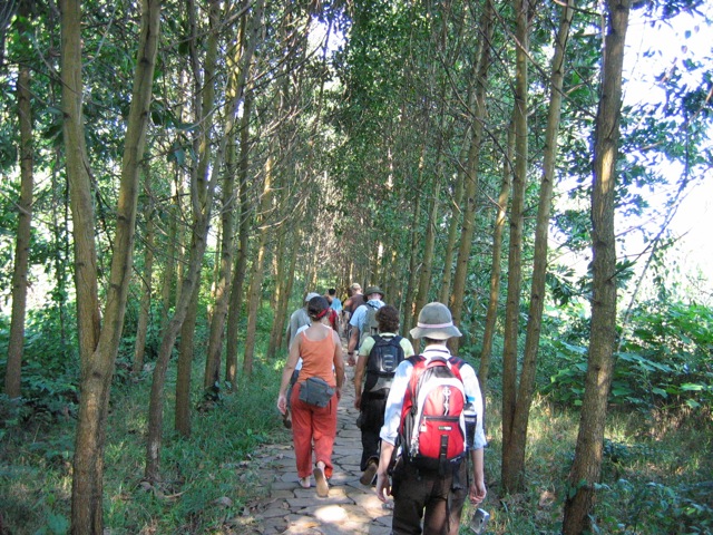 - A tree-lined walkway is used to exit the temple complex at My Son.