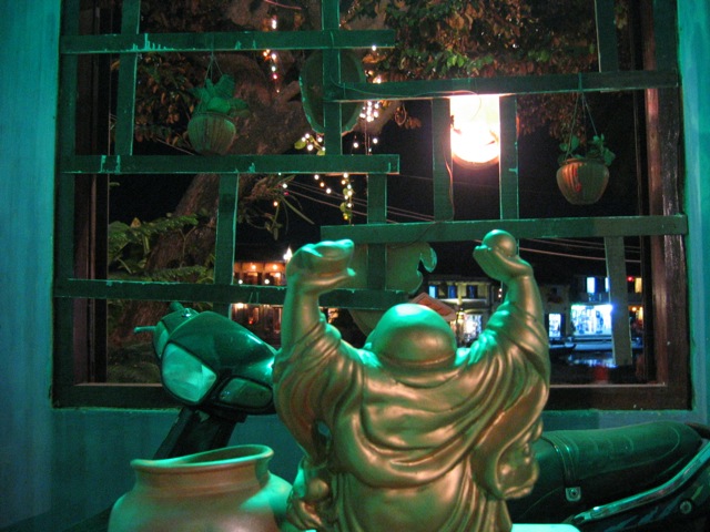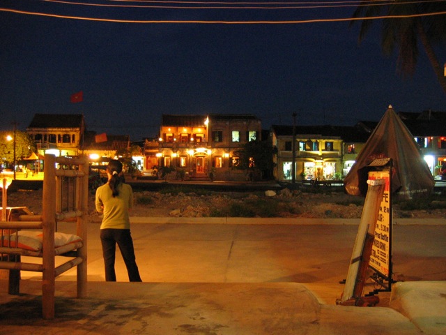 - Night-time view from our first Hoi An hotel. We stayed only one night because our room was infested with bugs!